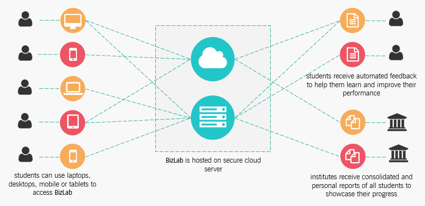 BizLab is cloud based and accessible on all laptops as well as mobile making it easy for students to access it anytime, anywhere.