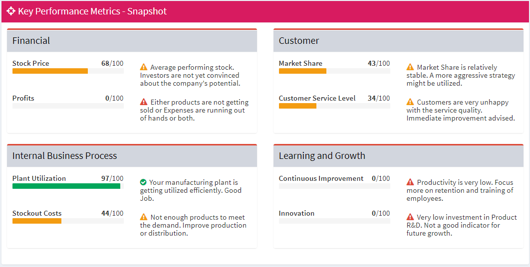 BizLab experiments help students run and practice concepts multiple times and in various modes. Can be used either under guided supervision of faculty in the classroom as a “workshop” or as self-driven competition against AI Bots as a “practice” mode.
