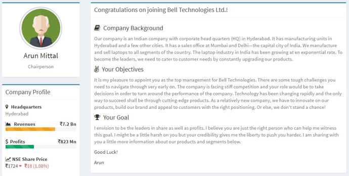 BizLab experiments presents scenarios that require application of concepts being covered in the MBA curriculum. It therefore helps to develop an integrated perspective of different aspects of management.