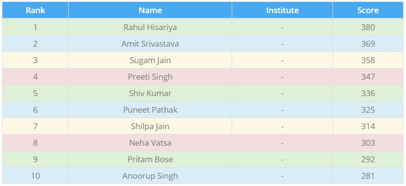 RankNameInstituteScore